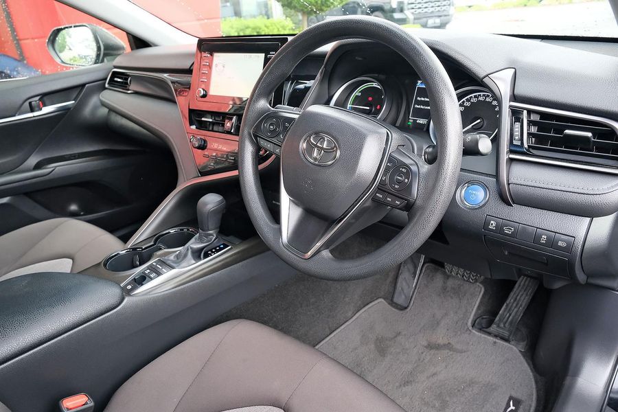 Powered by a 2.5L petrol-electric hybrid system (88kW electric motor) paired with a smooth CVT automatic transmission, this Camry delivers refined, quiet driving with excellent fuel efficiency and responsive performance for city or highway driving.