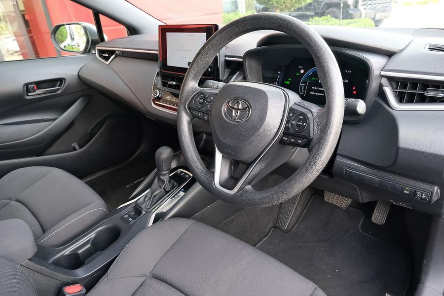 Powered by a 1.8L petrol engine paired with a 53kW electric motor, combined with an E-CVT automatic transmission, this Corolla maximises efficiency while maintaining responsive performance.